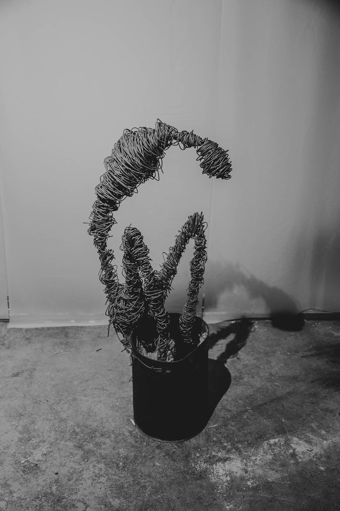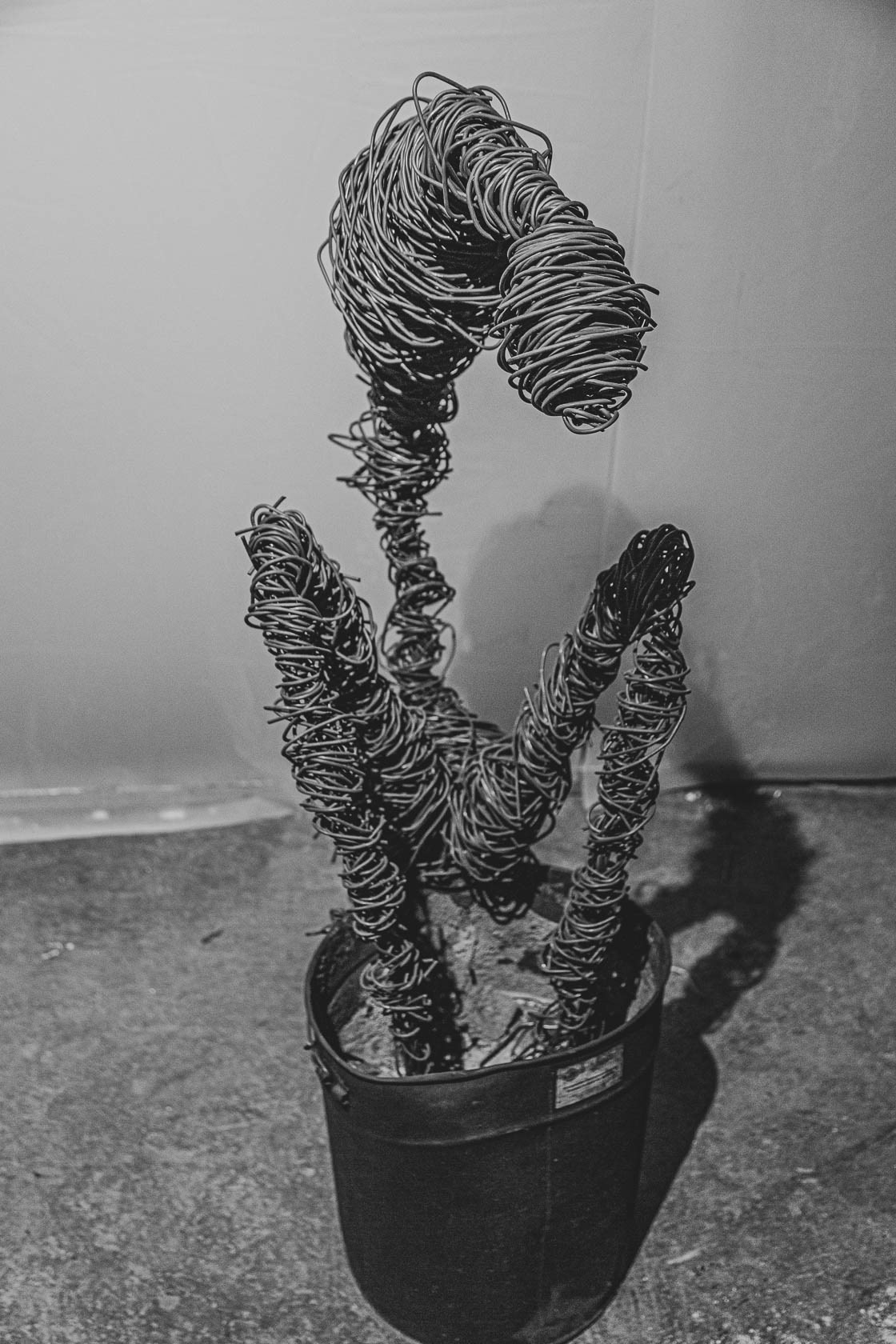 wire, iron barrel, cement